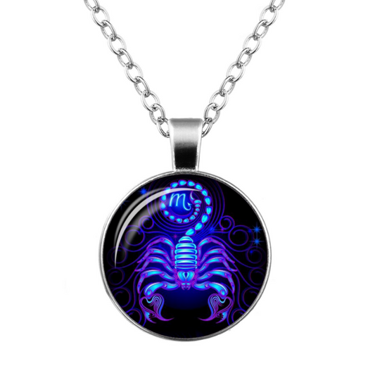 Zodiac Time Gem Glass Pendant Necklace