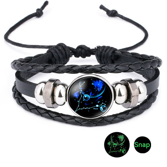 Luminous Zodiac Time Stone Cowhide Beaded Bracelet